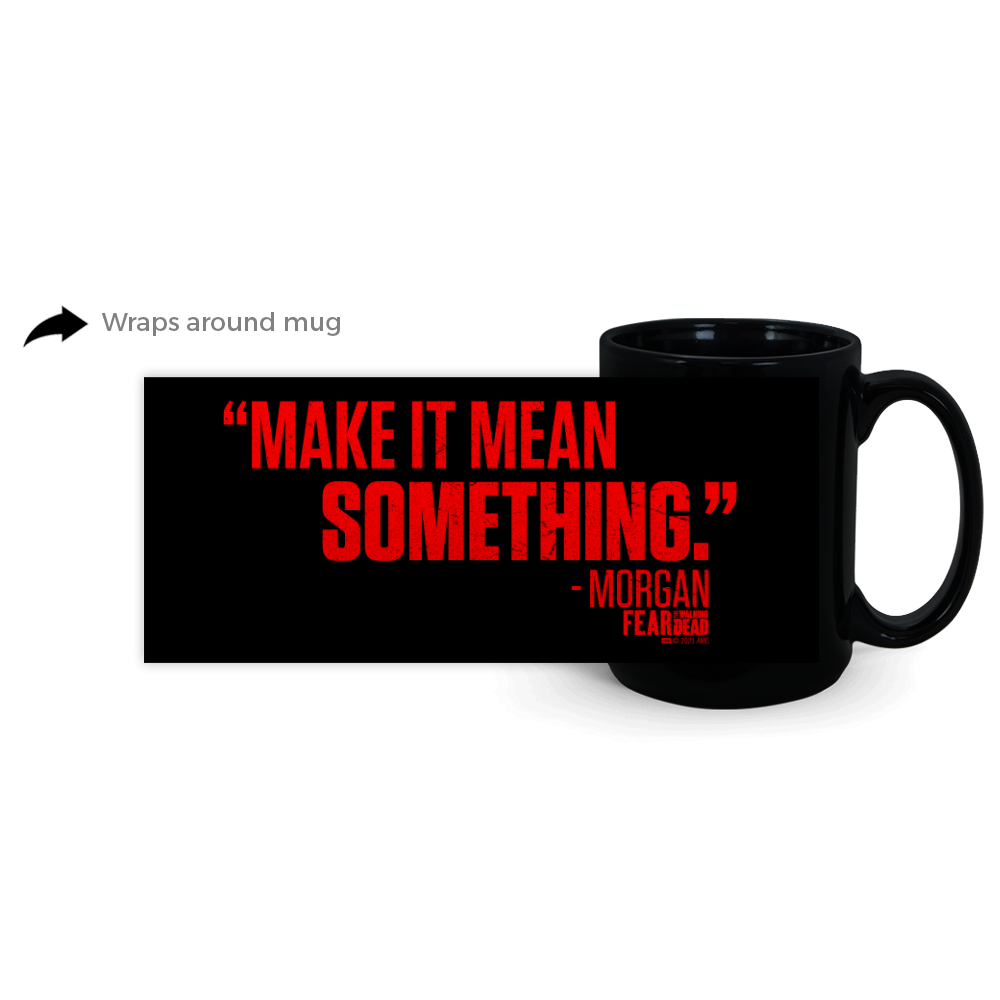 This Fear The Walking Dead Make It Mean Something Black Mug lets you take your favorite Morgan Jones quote with you. Whether you enjoy coffee or tea, this Fear The Walking Dead Mug is perfect for fans of Morgan Jones.