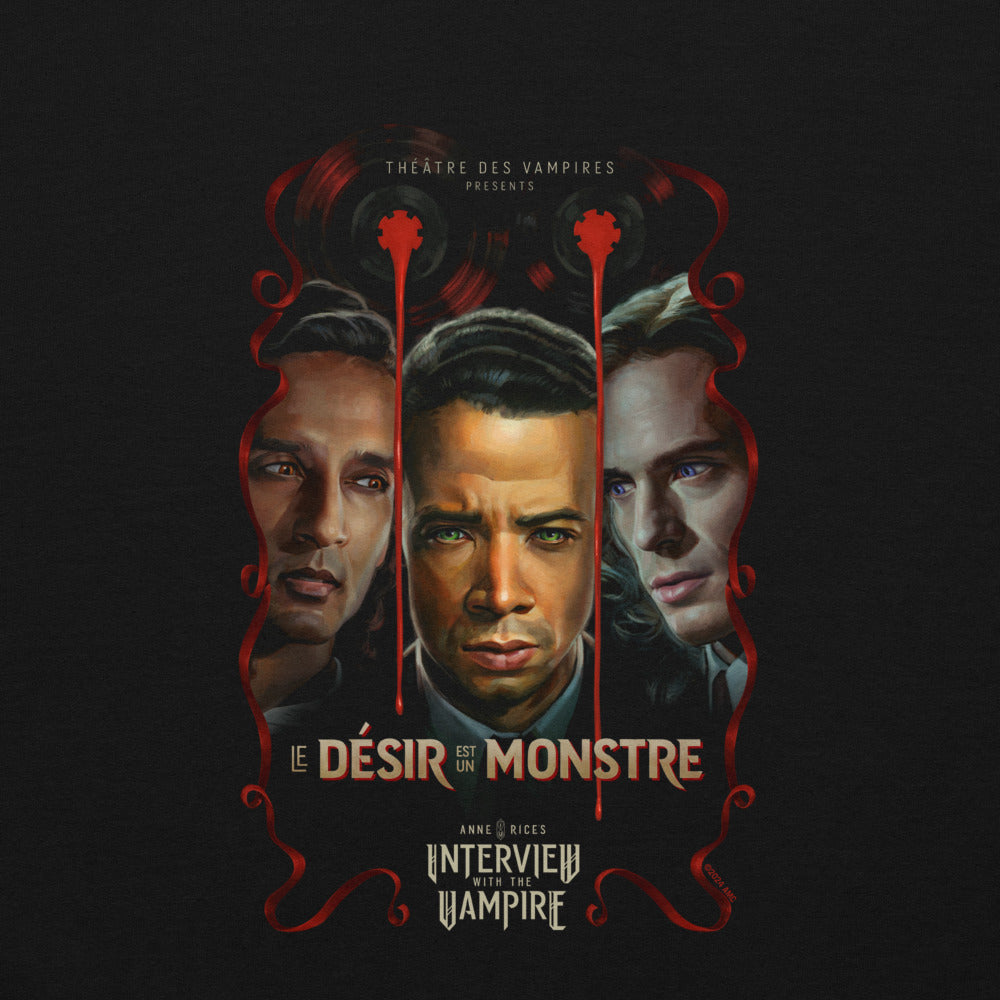 Dive into the world of Interview with the Vampire with the "Le Désir" Crewneck Sweatshirt. Featuring a bold design that channels the burning passion and eternal longing between Louis and Lestat, this cozy sweatshirt offers a perfect blend of comfort and dark elegance. Ideal for fans who embrace the series' seductive tension, it's a stylish and warm addition to any wardrobe—perfect for colder nights or days spent lost in the world of vampires