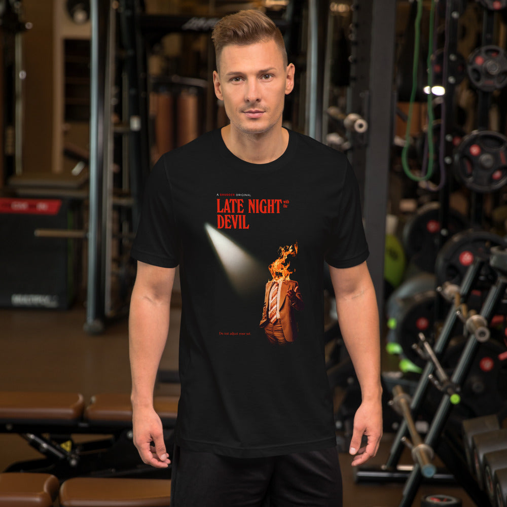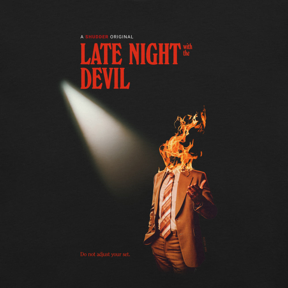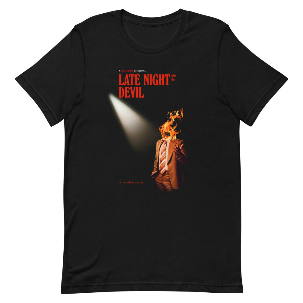 Celebrate your love for Late Night with the Devil with this T-Shirt. Featuring a bold design inspired by the movie's intrigue and allure, this shirt is perfect for fans who appreciate the darker side of cinema. Wear it proudly and embody the mystique of the night wherever you go!