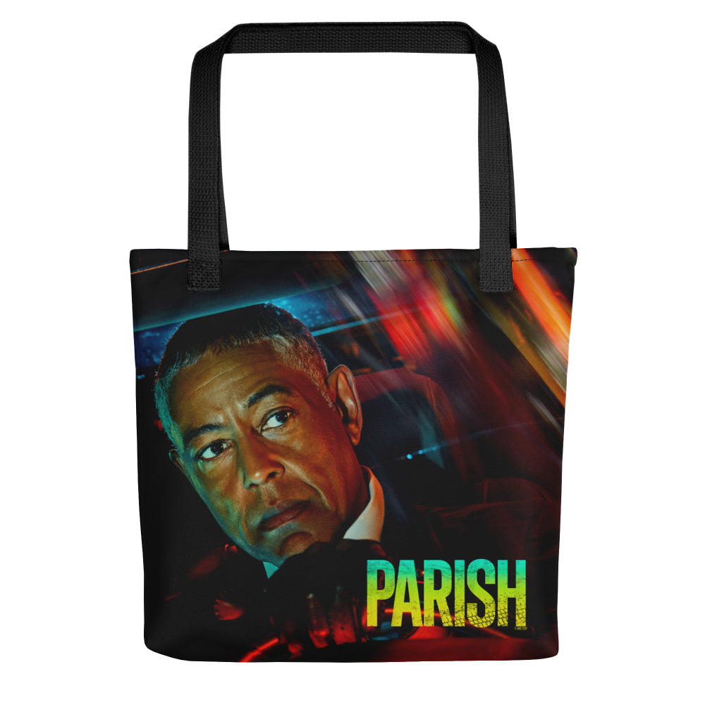 Our new Parish Art Tote Bag is a versatile accessory that echoes the pulse-pounding drama of AMC's latest series. With its spacious interior and rugged construction, this tote is ready to accompany you on any adventure, mirroring the unpredictable journey of a taxi driver caught in the crosshairs of crime and morality. Channel your bold spirit as you navigate your own urban landscape with the Parish Art Tote Bag by your side.