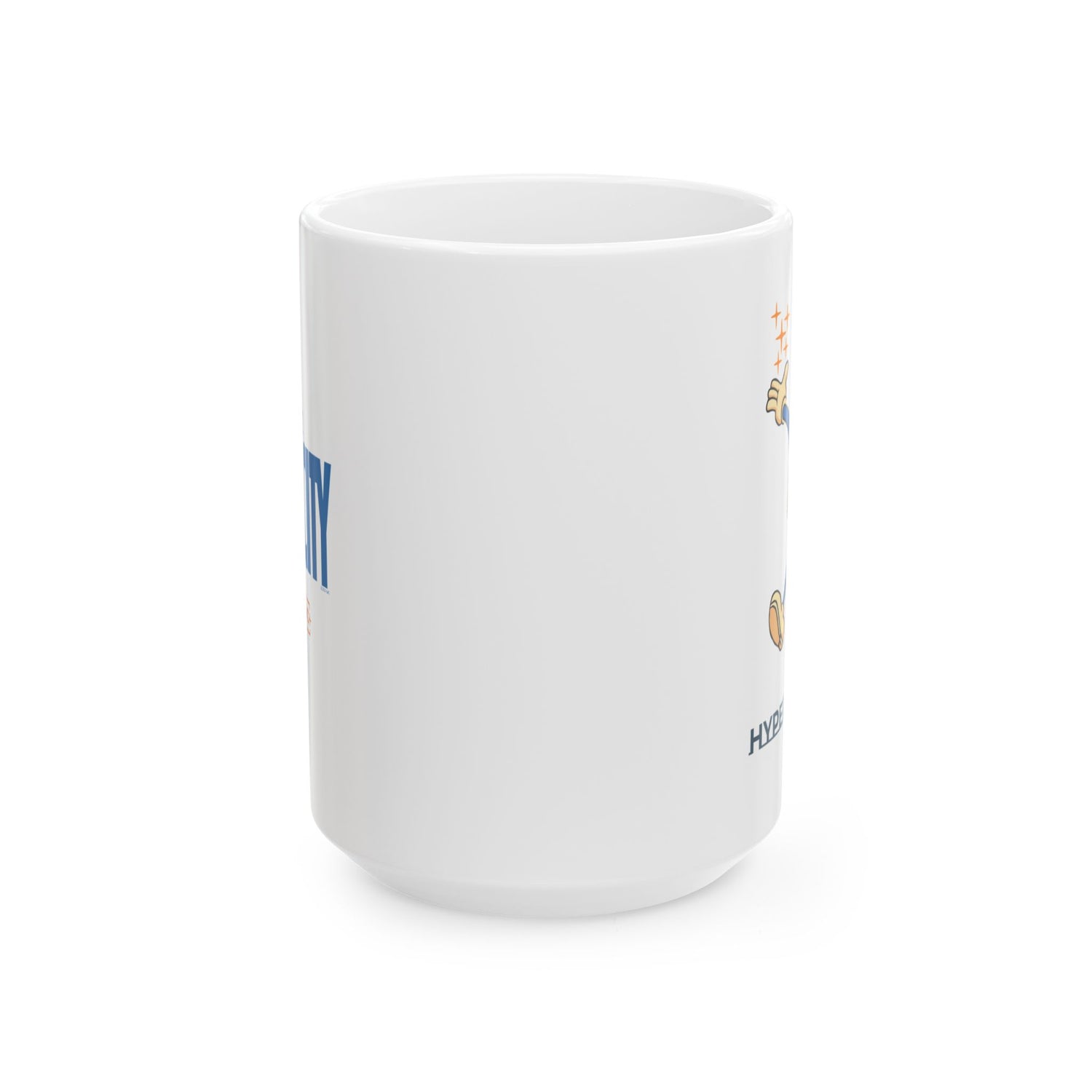 - Durable white ceramic mug