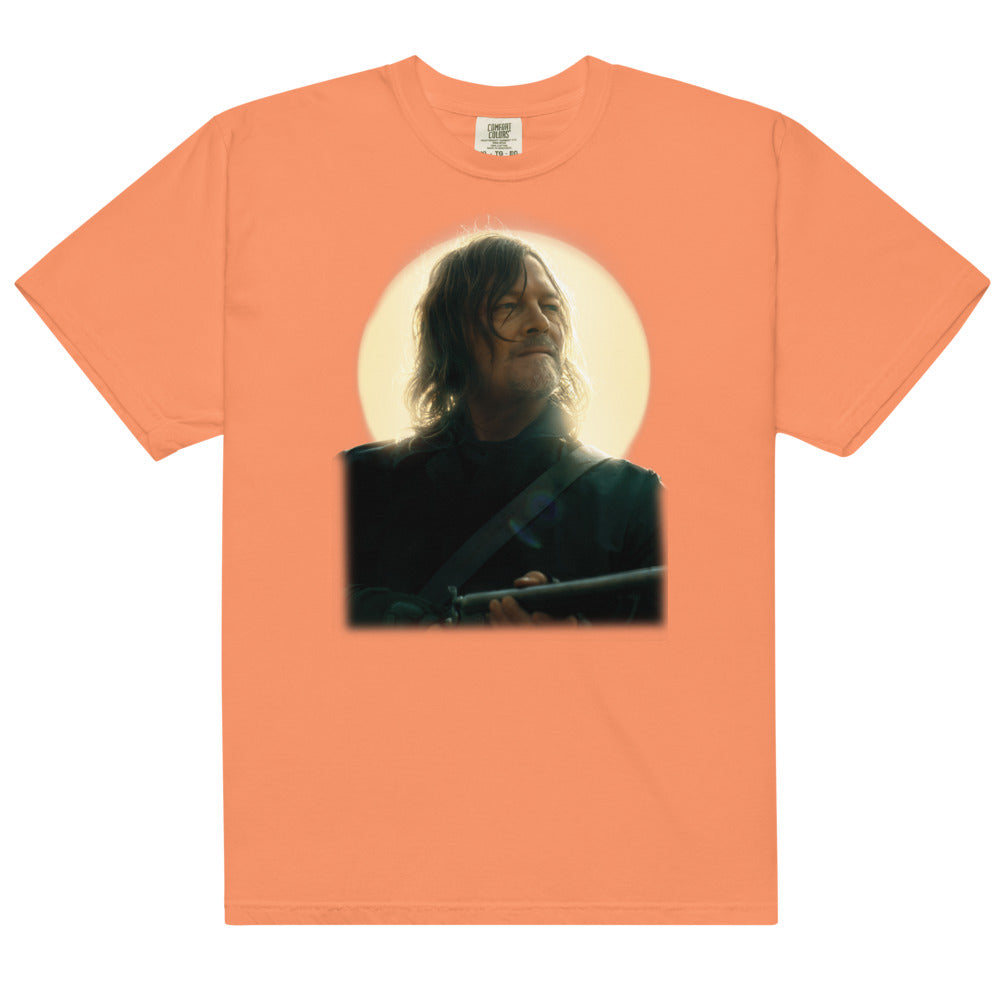 Showcase your love for the rugged survivor with this exclusive Comfort Colors T-shirt featuring Daryl Dixon. The shirt displays striking keyart of Daryl from The Walking Dead: Daryl Dixon spin-off series, capturing his intense gaze and weathered features in stunning detail.