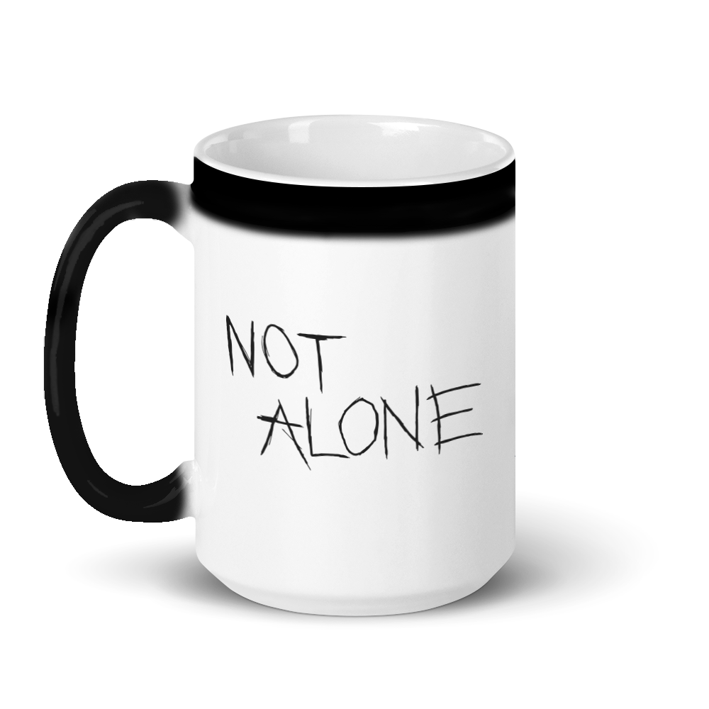 Your coffee routine just got a lot more exciting, just like Connie's evening. Before pouring your favorite hot beverage, this The Walking Dead Not Alone Black Color Changing Mug has a sleek black appearance. However, after coming in contact with a hot liquid, this mug reveals the creepy message Connie etched into the painting. This heat-activated mug will make you smile (or scream!) with each use.