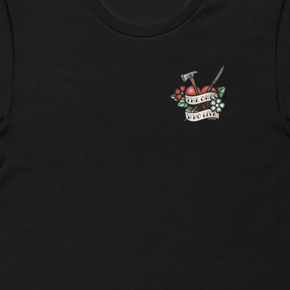Celebrate the unwavering resilience of the post-apocalyptic survivors with our vintage-inspired The Walking Dead: The Ones Who Live Heart T-shirt. This t-shirt encapsulates the indomitable spirit of those who persevere in a world overrun by the undead. Wear it with pride, honoring the enduring legacy of Rick and Michonne!
