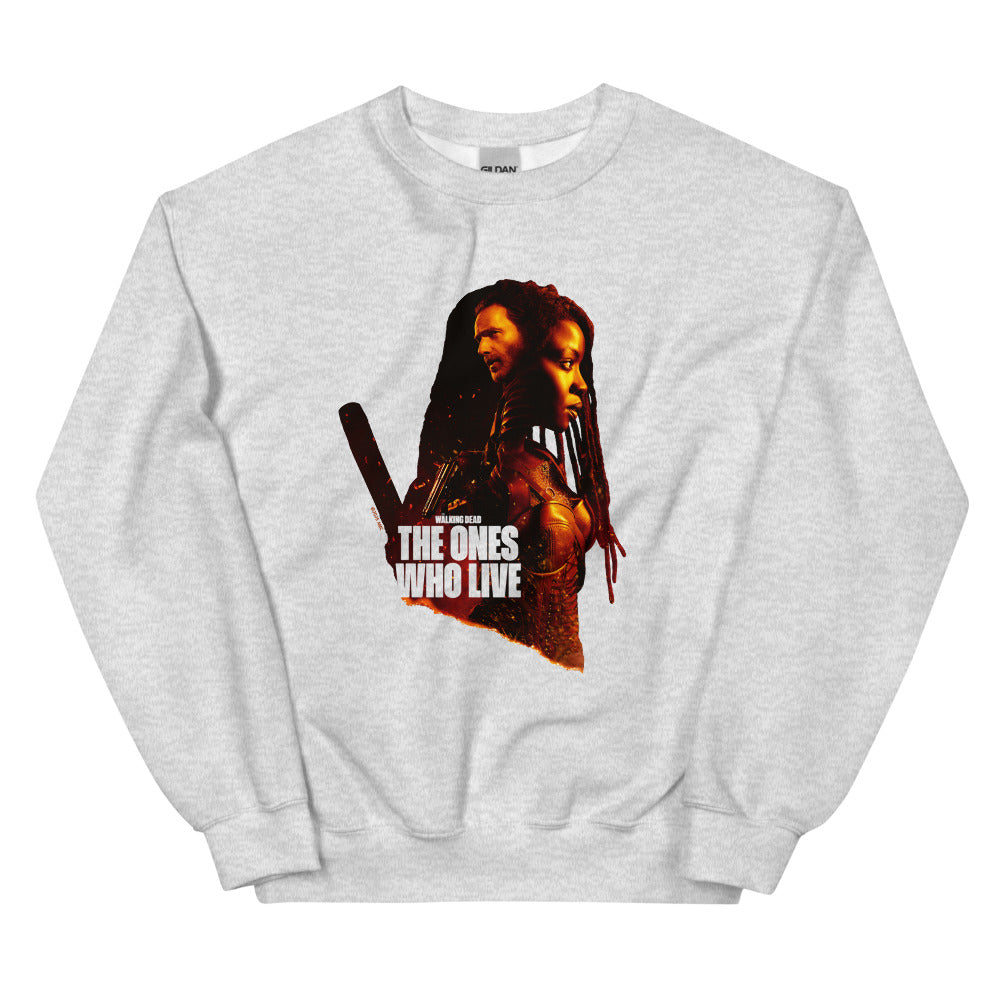 Stay cozy and show your love for The Walking Dead: The Ones Who Live with this Michonne Crewneck Sweatshirt. Featuring an iconic design inspired by the fearless and resilient Michonne, this sweatshirt is perfect for fans of the legendary survivor.
